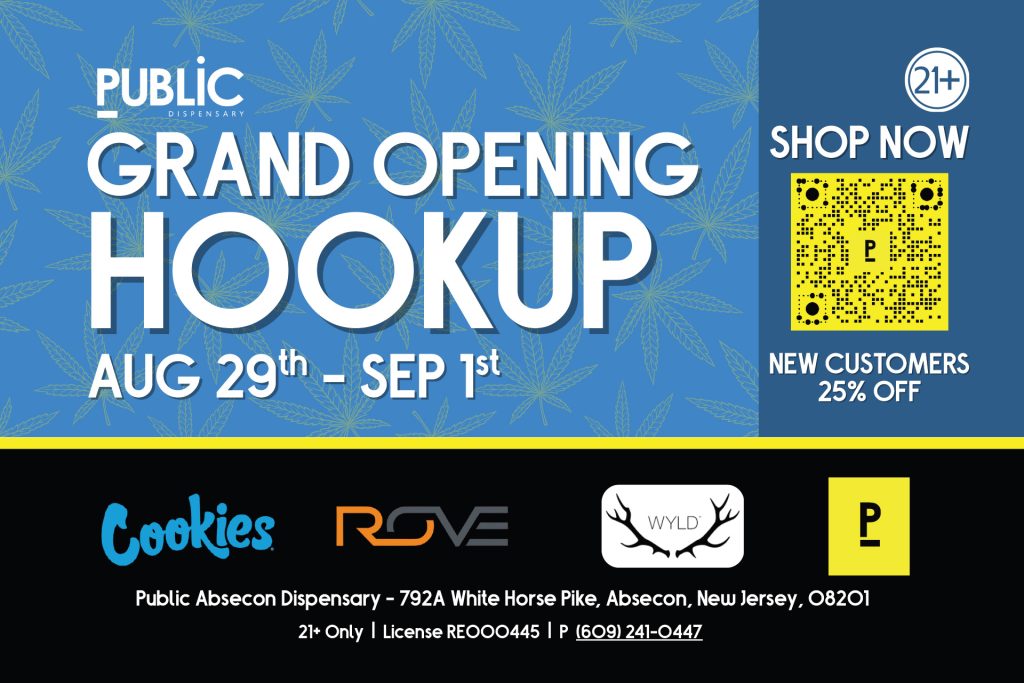 Public Cannabis – Absecon, NJ Friday, August 29 – Monday, September 1 We’re celebrating Labor Day Weekend with deals, community, and good vibes. Address: 792A