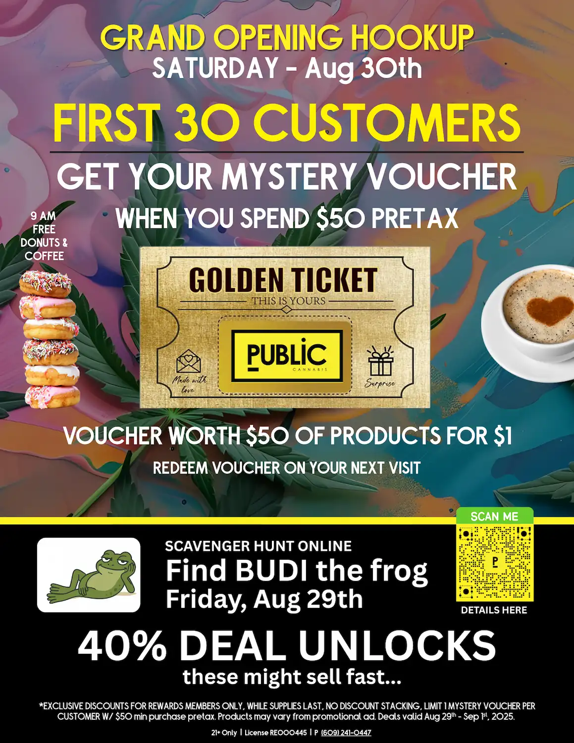 Labor Day weekend is the perfect time to check out Public Cannabis in Absecon. Exclusive weekend-only deals, free donuts and coffee, a chance to grab the Mystery Voucher, and community vibes all weekend long.